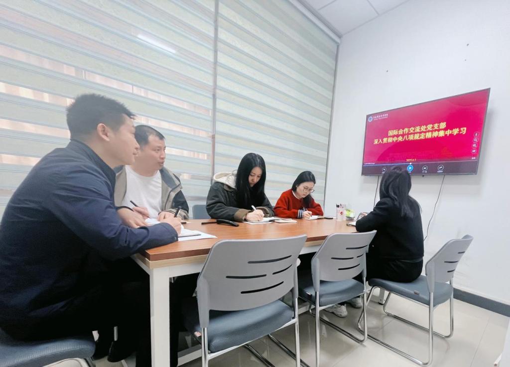 4月2日上午,学校国际合作交流处党支部在行政楼327会议室开展了中央八项规定精神学习教育集中学习活动。会议由党支部书记、处长王伟主持,处室全体党员参与学习。