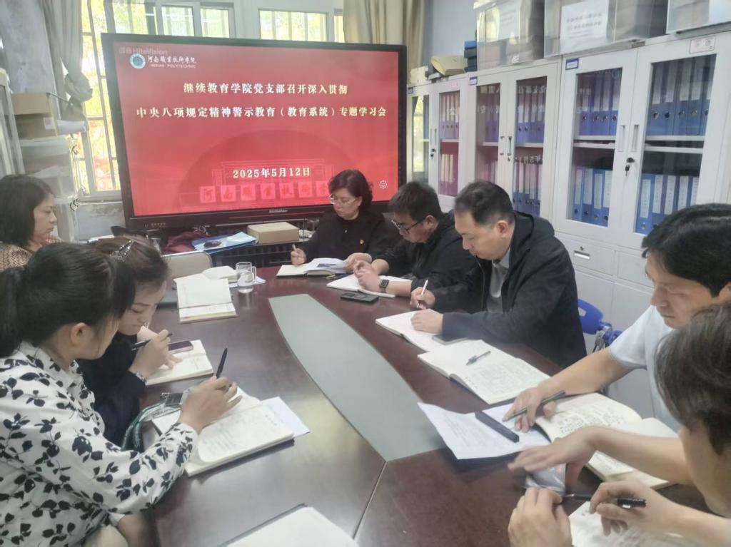 会议强调,全体党员要从典型案例中深刻汲取教训,时刻保持清醒头脑,筑牢党员思想防线。要不断提高政治站位,将中央八项规定精神内化于心、外化于行,严守纪律红线,杜绝一切违规违纪行为。在工作和生活中,时刻以党员标准严格要求自己,发挥先锋模范作用,以优良作风推动继续教育学院各项工作高质量发展。(供稿:霍本龙;审稿:王黎明)