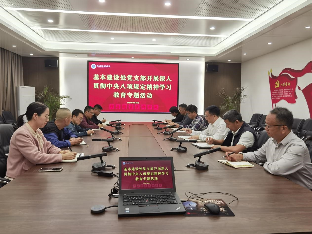 9月18日上午,学校基本建设处党支部书记吴玉刚在勤业楼组织开展深入贯彻中央八项规定精神学习教育专题活动。全体党员参加。