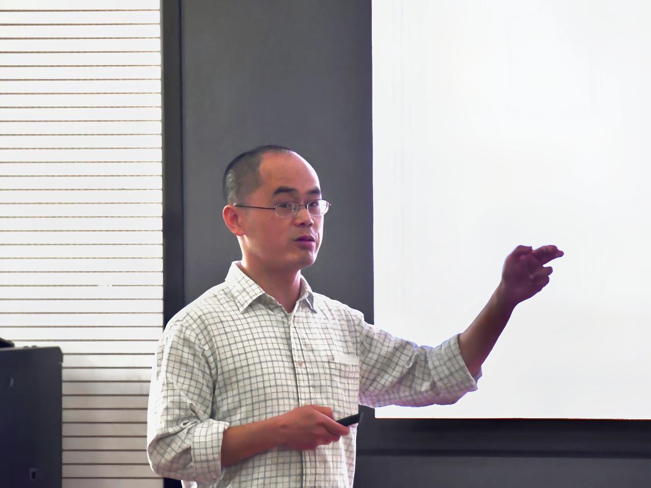 陈立副教授作《Convex hypersurfaces of prescribed curvatures in hyperbolic space》报告。陈立,湖北大学副教授。2004年武汉理工大学本科毕业,2009年武汉大学获得博士学位。2009年至2011年在中国科学院数学研究所从事博士后研究。2011年进入湖北大学工作。目前主要研究完全非线性偏微分方程及相关几何应用,在CPDE,IMRN,JFA,CVPDE等杂志发表论文20余篇。