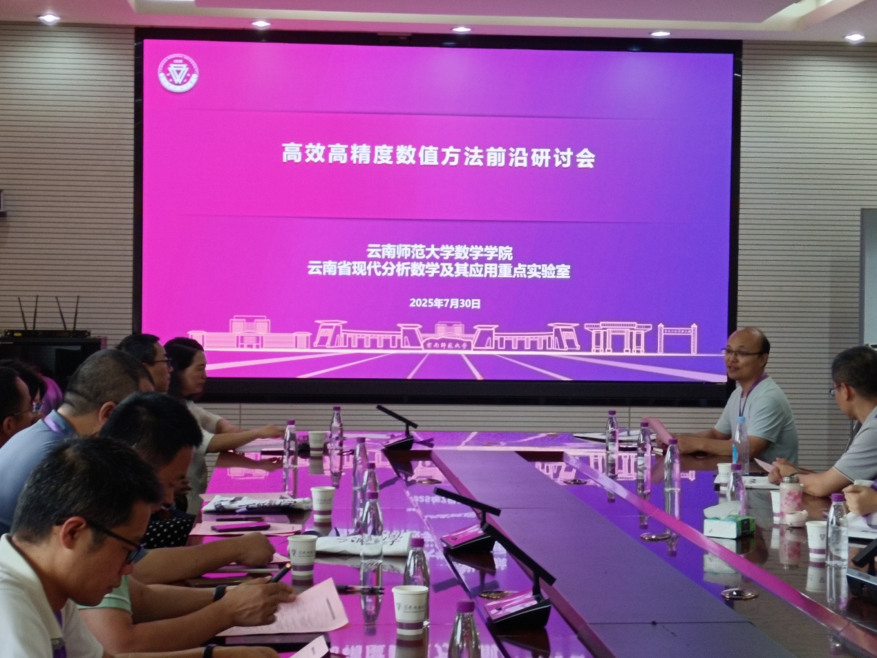 7月29日-31日,由云南师范大学数学学院、云南省现代分析数学及其应用重点实验室联合主办的高效高精度数值方法前沿研讨会在数学学院召开。来自北京大学、浙江大学、中国科学技术大学、哈尔滨工业大学(深圳)、天津大学、中国科学院青藏高原研究所、西安交通大学、长安大学、云南大学、河北师范大学、云南财经大学等国内众多高校及科研院所的专家学者及相关领域的教师、研究生共计30余人参会。此次研讨会得到了国家天元数学西南中心的资助。