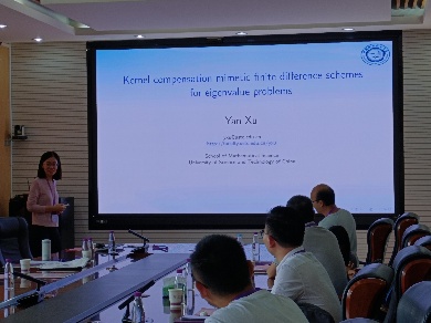 研讨会上,北京大学胡俊教授,中国科学技术大学徐岩教授、夏银华教授,浙江大学李雨文研究员,哈尔滨工业大学(深圳)王冀鲁教授,天津大学张勇教授,中国科学院青藏高原研究所田向军研究员,云南大学张根根副教授等13位专家学者作了主题报告。报告分别围绕核补偿拟态有限差分格式在特征值问题中的应用、理想磁流体方程的全局无散度保正间断伽辽金方法、弹性力学混合有限元方法及CAE算法引擎、曲面节点辅助空间预处理方法、两相铁磁流体界面建模、大规模线性响应特征值问题求解器、“AI+物理”气象预报平台设计、梯度流能量稳定格式等主题展开,覆盖多物理场数值模拟、高效算法设计、跨学科融合等前沿领域。与会专家与师生就计算数学领域的最新进展进行了深入交流与探讨。