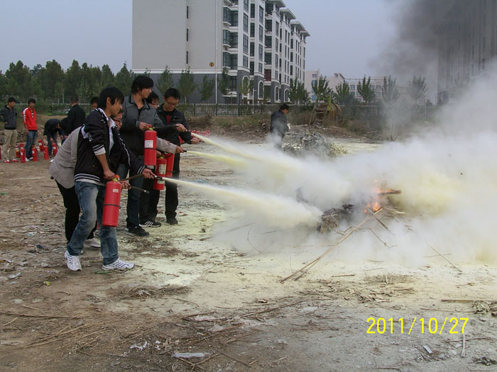 10月27日下午,为提高我院义务消防队员检查消除火灾隐患的能力、扑救初期火灾的能力、组织疏散逃生的能力和消防宣传教育的能力”,保卫处在后勤管理处的协助下,利用更换灭火器药粉的机会,组织学生消防队员80余人,使用过期灭火器进行了消防灭火演习。