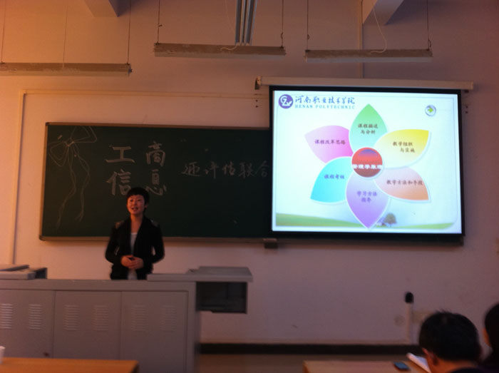 10月13日下午,为迎接省教育厅专家组对我院进行的人才培养水平工作评估,工商系、信息系组织100余名专业教师在3212教室联合举行了说课观摩活动。工商管理系万久玲主任、刘冰涛副主任,信息工程系副主任孙杰、张滨燕和示范办任凤轩老师应邀参加了本次活动。