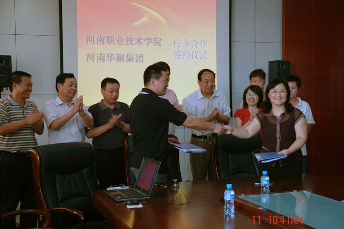 河南华颖集团董事长王颖华介绍了公司发展历程,他说,公司订单培养人才,有利于企业的持续、稳定发展。公司负责学生的教学、实习和日常管理工作。希望校企双方在教学场地、学生管理、师资配备等方面,资源共享、互利共赢。双方还展望了“凯通班”的发展前景,并就下一步订单工作的具体展开进行了讨论。