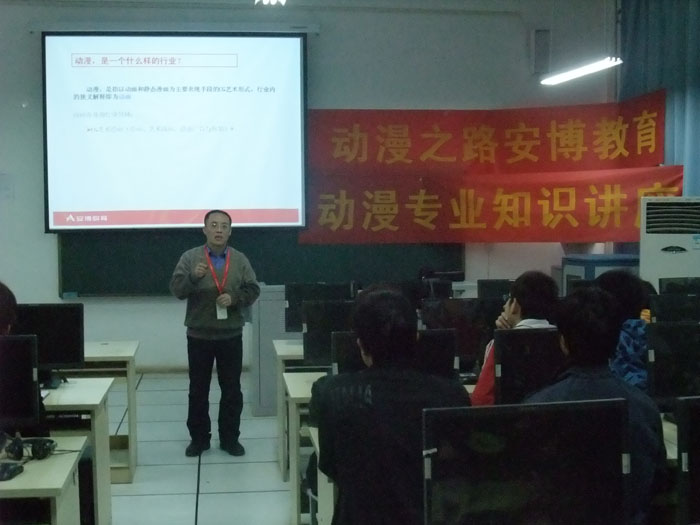 4月9日-18日期间,软件学院邀请了安博教育集团金牌讲师王鹏和动漫专业主管魏林两位专家为动漫设计与制作专业和软件技术专业的144 名学生举办了四场讲座。