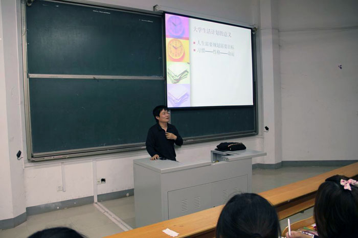 4月11日晚,系主任万久玲、副主任李湘勤、刘冰涛以及沈莉莉、田嘉、温宗和等六位老师在电教楼分别就“职业规划”、“提高交际能力”、“提高学习能力”、“丰富课余生活”和“提高实践能力”等五个专题举行首轮宣讲,受到学生们的热烈欢迎,由此拉开了本次活动的序幕。