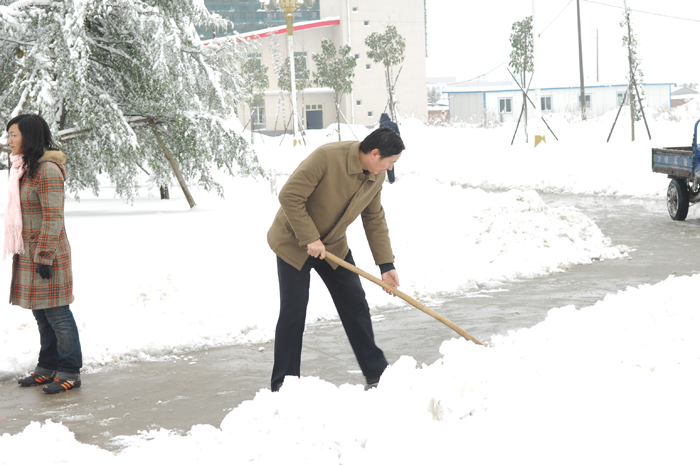 2009年11月11日傍晚开始,全省迎来了一场罕见的大雪,这场大雪给行人和车辆的出行带来了极大的不便。为了确保师生工作、学习、生活不受影响,12日早晨,我院启动应急预案,号召全体教职工清扫校园内的积雪,以保证学院正常的教学和生活秩序。信息工程系积极响应号召,八时半左右,系党总支书记李明玉带着没有课的教职工纷纷走出自己的办公室带着铁锨、扫帚开始铲雪行动。大伙首先清扫了学院大门口的积雪,因为学院大门口是车辆和行人的必经之路,也是最容易发生交通意外的地方。接着又清扫了行政楼附近,图书馆附近的积雪。由于天气寒冷,许多参加扫雪的老师面部、手部冻得通红,但没有一个人退缩,在大家的共同努力下,很快就把铺满积雪的道路给铲出一条小路来,保证了全院师生的安全出行。
