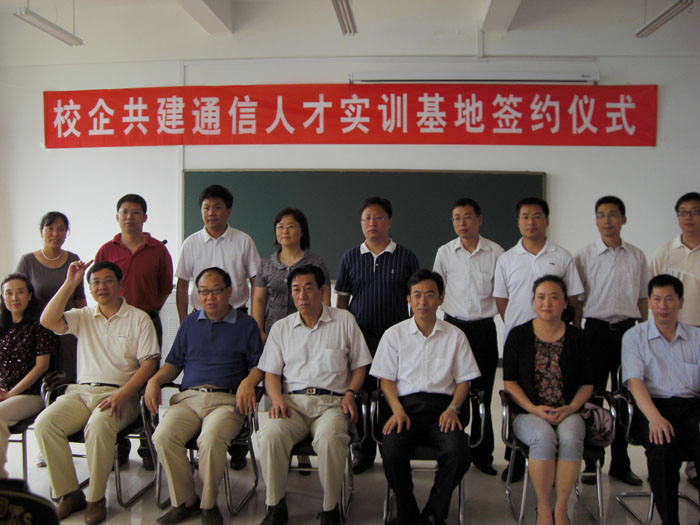 随后,校企双方领导共同签署了合作协议,并互授聘书。双方领导及代表合影后,王爱群院长和谢敬国副总经理为通信人才3G基站实训基地揭牌。