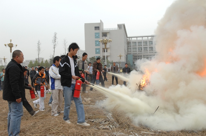 为配合“119”消防安全宣传活动,11月6日下午,保卫处在新校区组织了灭火器操作培训及消防演习。院工会主席郭自川亲临现场指挥和观摩,图书馆、各系(部)义务消防员80人参加了这次活动。