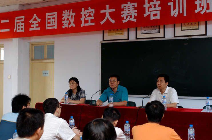 2006年7月24日上午,为期一周的第二届全国数控技能大赛河南赛区赛前培训班在我院正式开班,出席开班典礼的领导有,省劳动和社会保障厅技能开发处副处长朱飞、河南职业技术学院副院长彭志宏。此次培训班的授课教师主要有全国十大杰出工匠鲁宏勋、国家级裁判涂勇、CAXA高级技术人员以及河南职业技术学院第一届数控大赛指导教师苗志毅等。