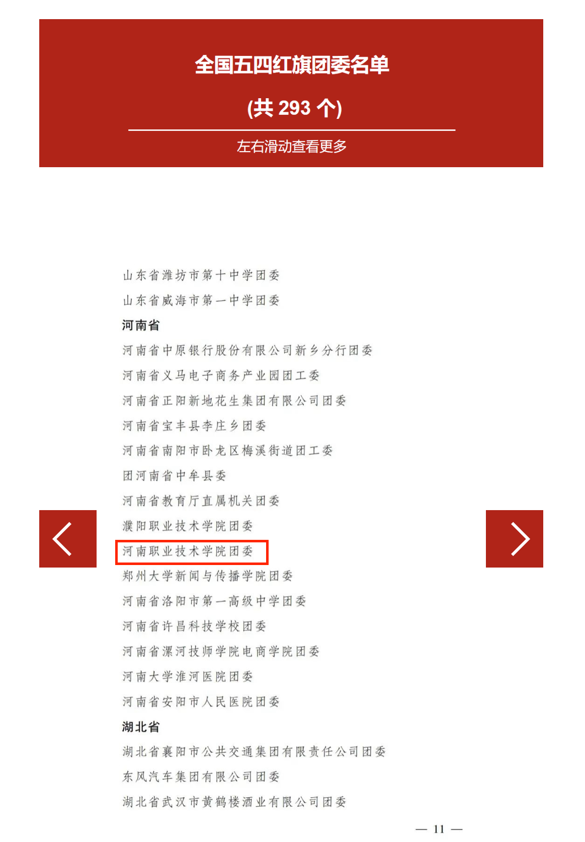 近日,共青团中央发布了《关于表彰“全国优秀共青团员”“全国优秀共青团干部”“全国五四红旗团委(团支部)”的决定》,河南职院团委荣获“全国五四红旗团委”荣誉称号。该称号是团中央授予基层团组织的最高荣誉,也是学校首次获此荣誉。