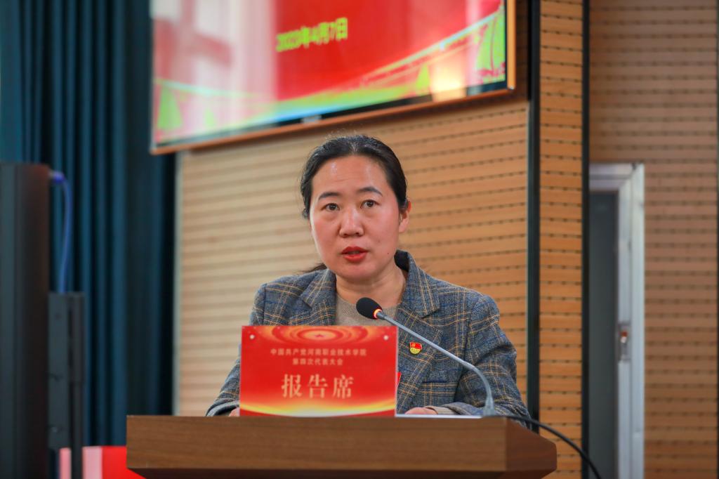 李桂贞同志代表校党委作题为《守正创新 再开新局 为推进学院高质量发展而团结奋斗》的工作报告,全面回顾了第三次党代会以来,学校在党的建设、依法治校、教育教学、立德树人、师资队伍、合作交流、创新创业、招生就业和服务社会等方面取得的主要成绩,深刻分析了学校在新时期发展所面临的机遇与挑战。报告认为,今后一个时期学校的总体工作思路是:以习近平新时代中国特色社会主义思想和党的二十大精神为指引,落实立德树人根本任务,以“十四五”发展规划为主线,以“双高计划”建设为重点,以“职教本科”创建为目标,突出“一个加强”,实施“两项改革”,聚焦“三项重点”,打造“四个高地”,抓好“五个基础”。报告强调,全体师生要以此次大会为新起点,以党的二十大精神为指引,在省委教育工委、省教育厅的领导下,树立“百强之上再攀高”的赶超意识,“高质量发展看河职”的标杆意识,“不在前列即落后”的争先意识,“居安思危不懈怠”的底线意识,大力弘扬“河职精神”,抢抓机遇、开拓创新,踔厉奋发、勇毅前行,努力为实现学校和河南高质量发展作出新的更大贡献。