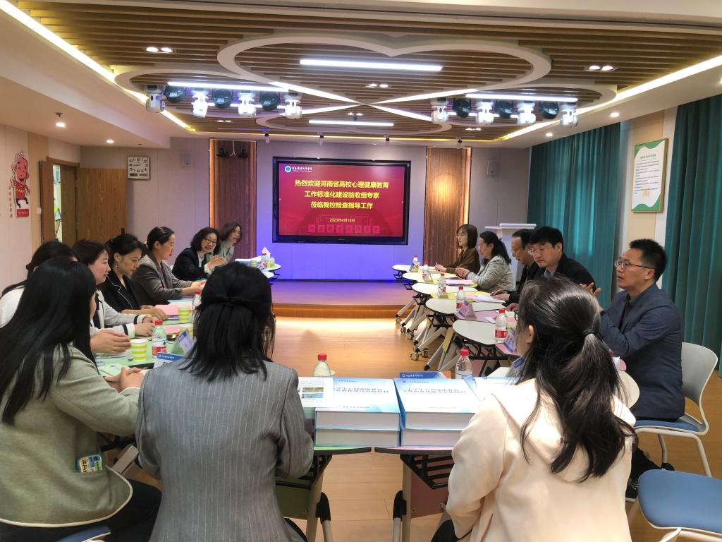 4月18日,河南省高校心理健康教育工作标准化建设第一验收组、河南师范大学原党委书记赵国祥一行5人,对学校心理健康教育工作标准化建设进行考核验收。校党委副书记、纪委书记田华,学工部、团委和各二级学院相关负责人参加汇报会。