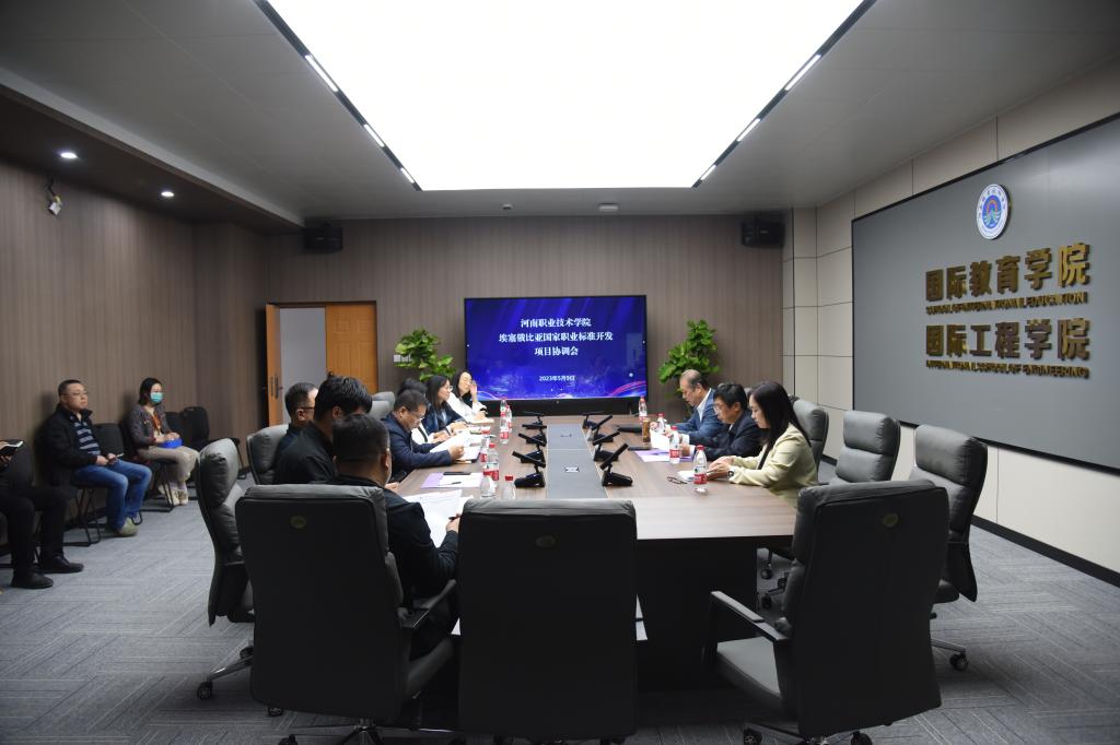 5月9日下午,河南职院召开埃塞俄比亚国家职业标准开发项目协调会。校长梅乐堂、副校长王皓出席会议,国际合作交流处、文化旅游学院、财经管理学院、数字创意与设计学院和汽车与交通学院相关负责人参会。王皓主持会议。