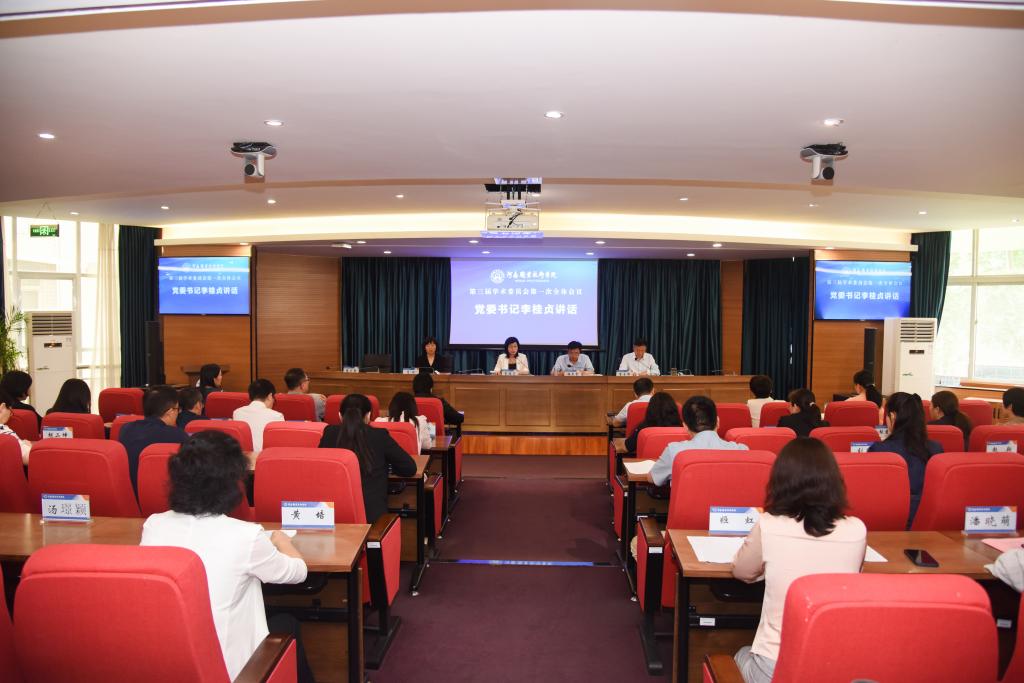 5月16日下午,河南职院召开第三届学术委员会第一次全体会议。校党委书记李桂贞出席会议并讲话,校长、学术委员会主任梅乐堂作工作报告,并为新一届委员颁发聘书。全体委员参加会议,各教学部门相关负责人列席会议。会议由副校长李玉峰主持。