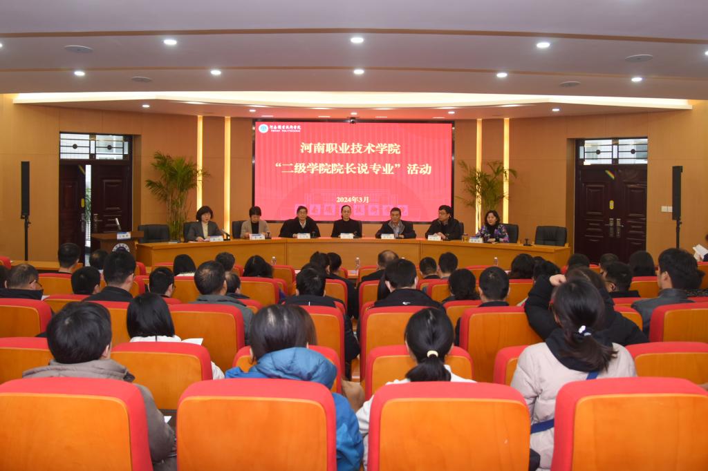 3月3日上午,河南职院举行2024年“二级学院院长说专业”活动。原中国教育科学研究院职业与继续教育研究所所长孙诚,原中原工学院副校长唐多毅,原河南省教育厅二级巡视员秦剑臣,教育部职业教育双高计划评审专家委员会成员、郑州师范学院党委书记刘国际,教育部普通高等学校本科教育教学评估专家、原洛阳理工学院党委副书记葛玻等5位知名专家学者应邀现场指导。校长夏新颜致辞,副校长肖珑主持活动。