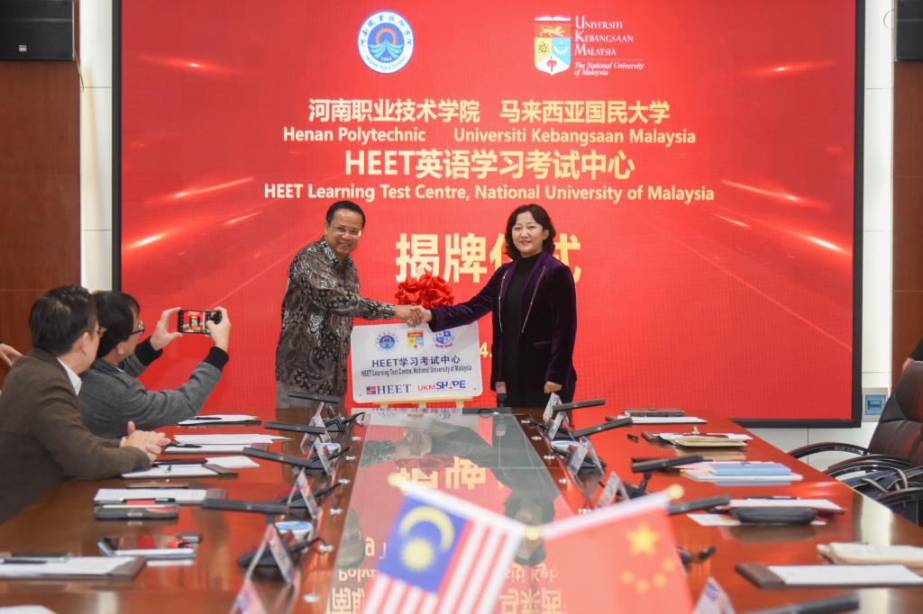 随后,夏新颜与Dr. MUHAMMAD BIN HUSSIN共同为两校联合开展的英语学习考试中心进行揭牌。