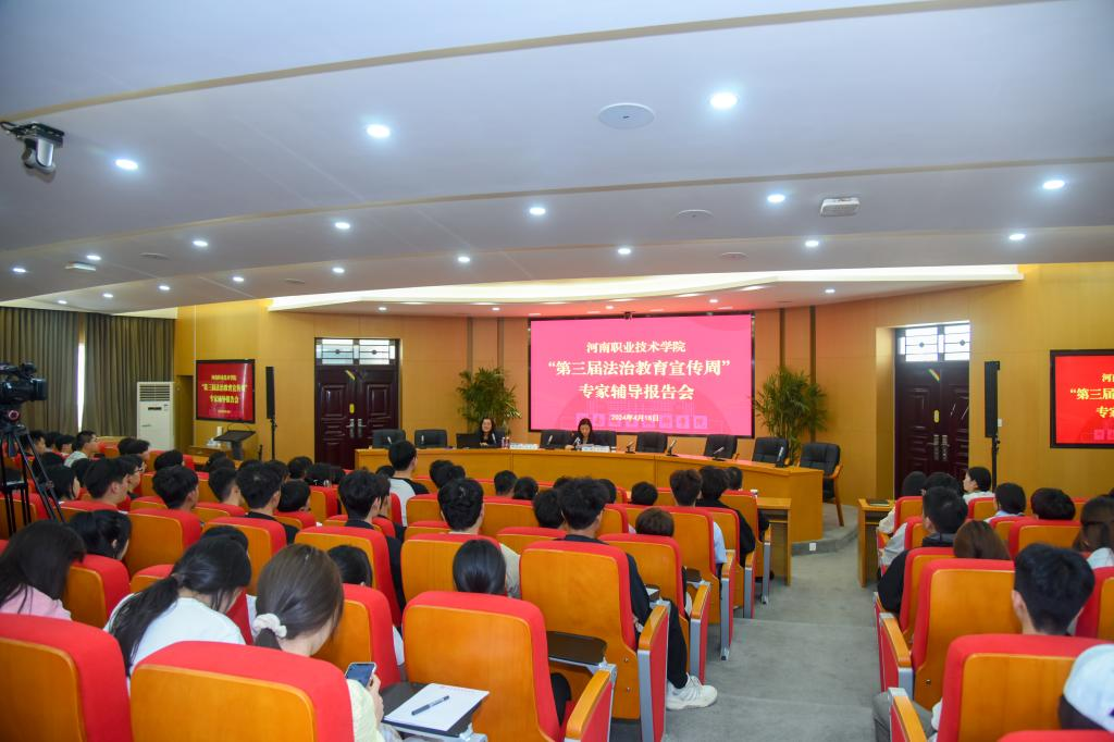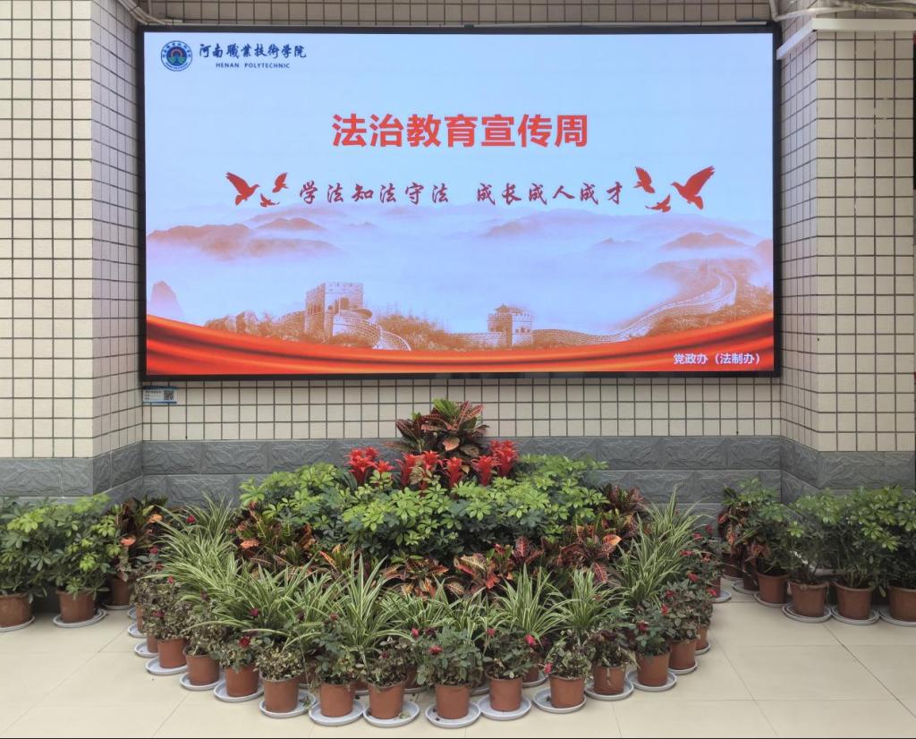 活动周期间,学校积极创新法治教育宣传形式,以“一日一活动”为主线,精心打造了“法律诊所”“法治长廊”“普法电波”“学法诵典”“法治讲堂”等富有河职特色的法治活动,奏响河职普法宣传最强音。“法律诊所,解你所惑”,党政办公室联合河南荟智源策律师事务所将法律诊所开进校园,“问诊”法律疑难、普及法律知识,切实增强了全校师生的法治意识和运用法律知识解决实际问题的能力;“法治长廊,润心育人”,党委宣传部认真践行校园法治文化阵地建设,利用条幅、海报、宣传栏等传播载体,结合通俗易懂的法律图文,在校园内搭设法治文化长廊,让师生近距离学习法律知识,接受法治文化熏陶,为校园再添靓丽的法治风景线;“普法电波,声声不息”,团委通过校园广播站积极传播法治声音,分享消防安全、网络安全、道路交通安全、心理健康、防范电信诈骗等与师生息息相关的法律法规及案例,让“普法小喇叭”萦绕在师生耳边心间;“学法诵典,典亮生活”,党委学生工作部重点围绕《民法典》举办“学法典、诵法典”主题朗诵活动,组织学生以多种形式诵读法律条文,并结合校园霸凌、紧急救助、“校园贷”、高空抛物等热点时事,以案释法、以典说法,让《民法典》这部“社会生活百科全书”真正走到学生身边、走进学生心里;“法治讲堂,强基铸魂”,马克思主义学院邀请河南警察学院张国琦教授等法学专家,面向广大师生作法治专题报告,与会师生通过聆听翔实生动、贴合校园实际的法律讲座,深刻领悟习近平法治思想的丰富内涵,让法治理念在心中生根发芽。