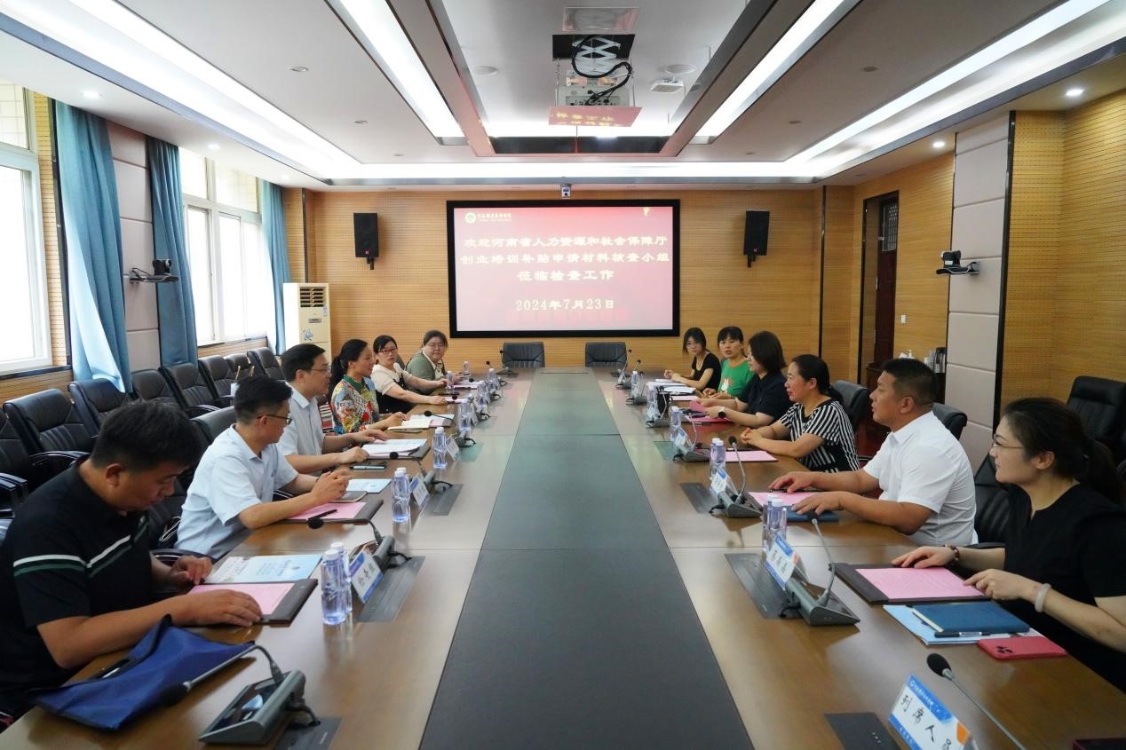 7月23日上午,以河南省人力资源和社会保障厅就业促进局副局长刘海东为组长的创业培训补贴核查专家组一行6人来校,就2023年度创业培训补贴材料进行检查。校党委副书记、工会主席田华出席汇报会。继续教育学院负责人及相关人员参加会议。