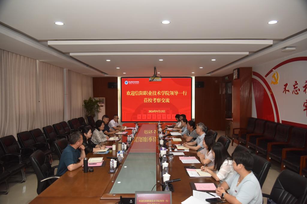 9月13日上午,信阳职业技术学院纪委书记蒋有红一行来校考察交流。校党委副书记、工会主席田华,校党委委员、纪委书记盛兴文出席座谈会。党委组织部、党委教师工作部、智能制造学院和现代信息技术学院等有关单位负责人参会。座谈会由校党委委员、党委组织部部长杨华主持。