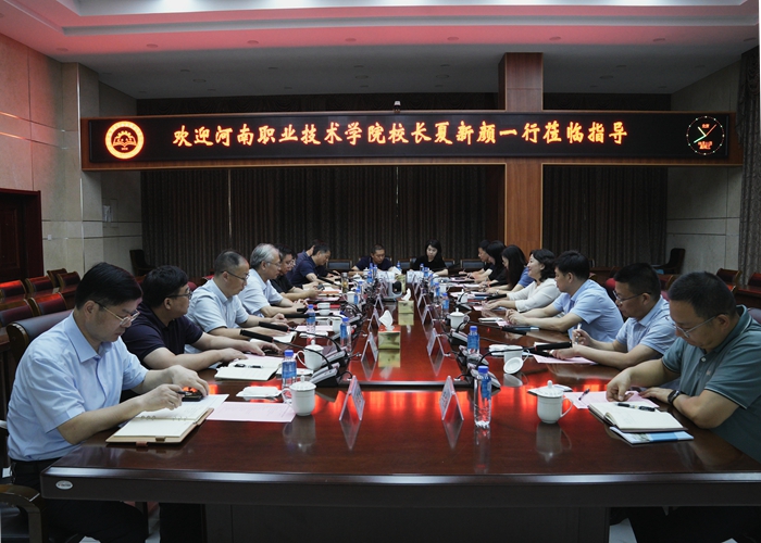 10日上午,夏新颜一行在河南工业职业技术学院校长屈保中的陪同下,参观了学校办学成果展和智能制造工程中心。双方就国家“双高计划”建设、专业建设、科技开发与成果转化等方面进行了深入交流。