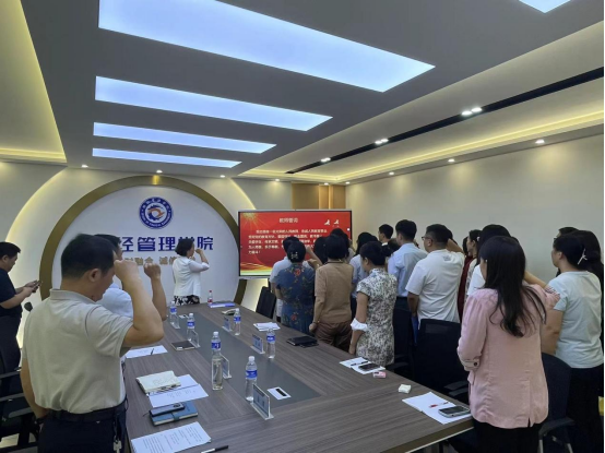田华向学院全体教师致以诚挚的节日问候,并希望全体教师要坚定理想信念、秉持师德师风、勇于追求真知,不断学习和实践教育家精神,努力提升自己的教育教学水平,为学生的成长和学校的发展贡献更多力量。随后,新入职教师代表发言,表达了对教育事业的热爱和对未来教学生涯的美好憧憬。院长窦雪霞带领全院教师重温了教师誓词。