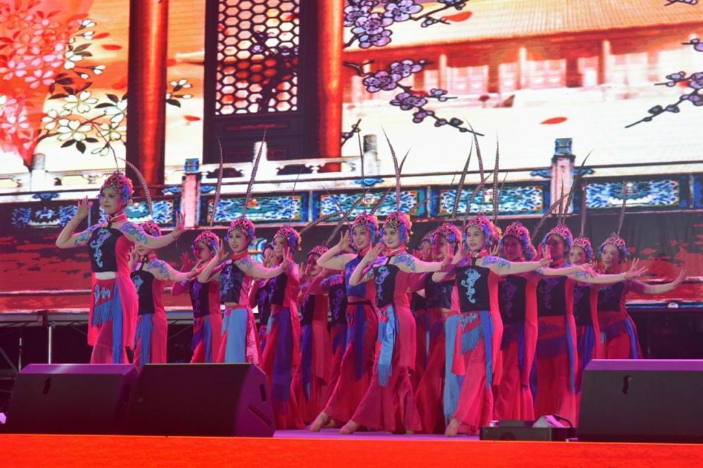 晚会分为“党辉熠熠映青春、荣校奋进谱华章、报国壮志启新程”三个篇章,融合快板、歌舞、相声、器乐演奏等多种表演形式,唱出了青年学子青春追梦、强国有我的昂扬精神。晚会在精彩的歌舞表演《盛世中华》中拉开序幕,歌曲《我们中国》歌颂了祖国朝气蓬勃欣欣向荣的大好局面,舞蹈《庄严的宣誓》展现了吾辈当自强的决心,中国舞国标舞串烧《舞动韶华》用动感的舞步彰显了同学们活力四射、激情洋溢的精神风貌,笛子独奏《扬鞭催马运粮忙》收获了全场的热烈掌声,原创音乐快板《梦想起航》抒发了河职学子做无愧于新时代优秀青年、开创人生新篇章的心声。演出最后,音乐学院教师代表、新生辅导员和全体演职人员齐声合唱《我和我的祖国》,迎新晚会圆满落下了帷幕。