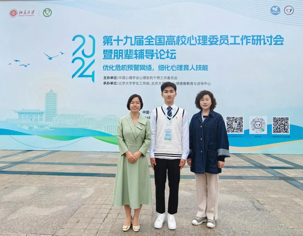 10月16日至18日,第十九届全国高校心理委员工作研讨会暨朋辈辅导论坛在北京大学举行。北京大学党委副书记、副校长宁琦,中国心理学会理事长苏彦捷,国家心理健康与精神卫生防治中心副主任黄长群教授等专家学者,来自国内外知名高校、研究机构的心理健康教育工作者以及百余所高校心理委员近1000人参加会议。学校心理健康教育中心主任温娟娟应邀作主题报告;音乐学院学生陈子坤当选第七届全国心理委员论坛副主席。