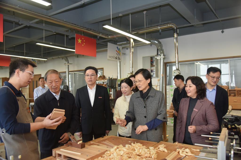 随后,蒋笃运一行调研考察了学校智慧餐厅实训室、木工创意工作室、汽车与交通学院实训基地、智能制造学院激光加工技术技能创新中心、智能制造学习工厂、中国国际创新创业大赛和“挑战杯”系列竞赛国家级成果展,与师生进行亲切交谈,详细了解人工智能在实训教学中的应用和校企合作项目等情况,并对学校“人工智能+教育”工作提出了期望和要求。(供稿:邓会敏,审稿:刘岩)
