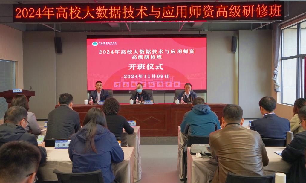 11月9日上午,由河南省人力资源和社会保障厅主办,河南职院承办的2024年高校大数据技术与应用师资高级研修班在合鼎楼开班。省人力资源社会保障厅专业技术人员管理处副处长吴军辉,校党委委员、副校长李玉峰出席开班仪式并讲话。来自省内高校、企业50余名从事大数据技术相关工作的专业技术人员参加开班仪式。