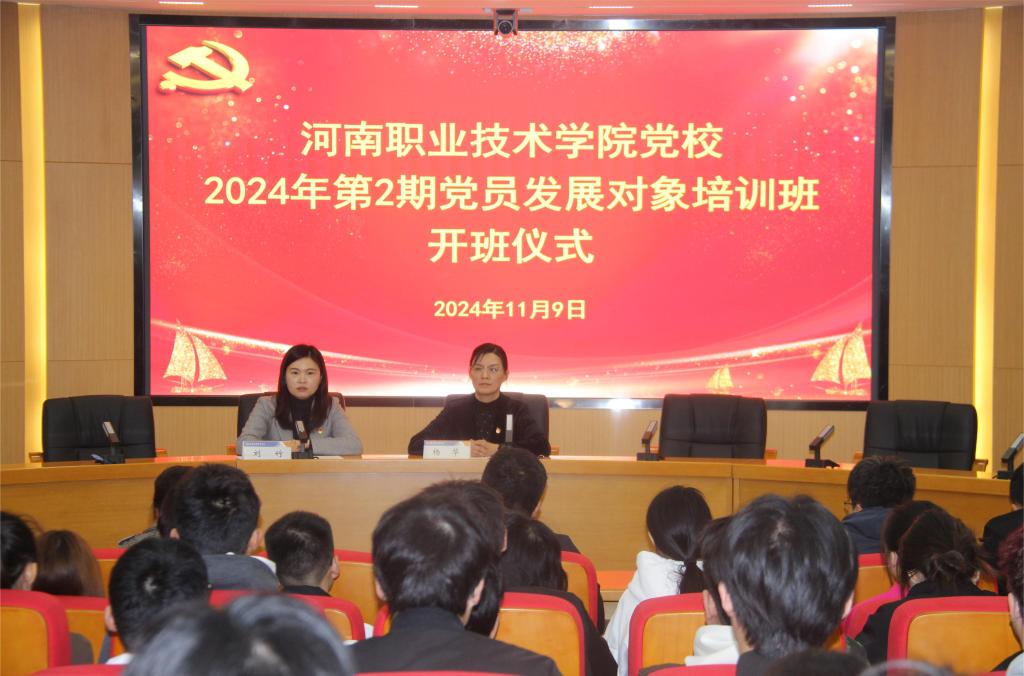 11月9日上午,河南职院党校2024年度第2期党员发展对象培训班开班。校党委委员、组织部部长杨华出席开班仪式,并作题为《坚定信仰,勇担使命,踔厉奋发向未来》的专题党课。76名师生党员发展对象参加开班仪式。