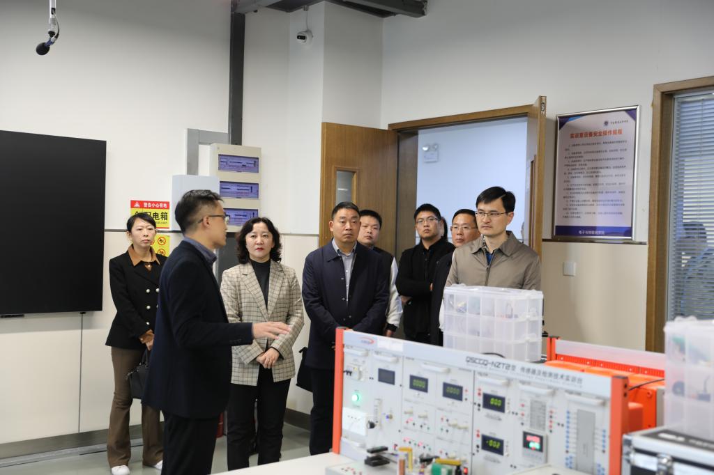 调研组一行听取了学校关于市域产教联合体建设方面的工作汇报,参观了智能制造学院、汽车与交通学院和电子与物联网学院产教融合实训基地建设及学校创新创业成果展,对学院取得的建设成果给予了充分肯定。随后,专家组一行前往郑州市航空港区教育卫生体育局召开座谈会,与学校、港区政府部门、企业进行深入交流。学校相关部门负责人参加了此次座谈会。