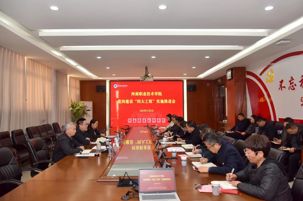 12月5日下午,学校召开党的建设“四大工程”实施推进会。校党委书记厉励,校党委副书记、工会主席田华,校党委委员、纪委书记盛兴文,党政办公室、党委组织部、党委宣传部、纪委办公室等9个相关职能部门负责同志及12个二级学院党总支书记参加会议。会议由田华主持。