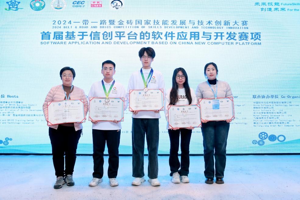 12月12日至14日,2024“一带一路”暨金砖国家技能发展与技术创新大赛首届基于信创平台的软件应用与开发赛项在哈尔滨落下帷幕。经过激烈角逐,学校现代信息技术学院学生杨帅浩、温俊轲分别荣获高职组二、三等奖;学校荣获优秀组织奖。