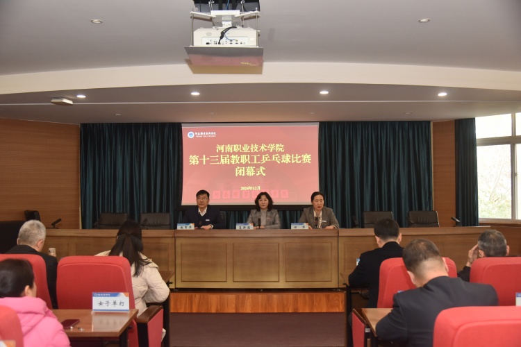 12月23日下午,学校在行政楼238会议室举行第十三届教职工乒乓球比赛闭幕式。校党委副书记、校长夏新颜,校党委副书记、工会主席田华出席闭幕式,并分别为获得本届乒乓球比赛的男女团体和男女单打前八名运动员颁奖。校分工会负责人、全体参赛运动员参加闭幕式。