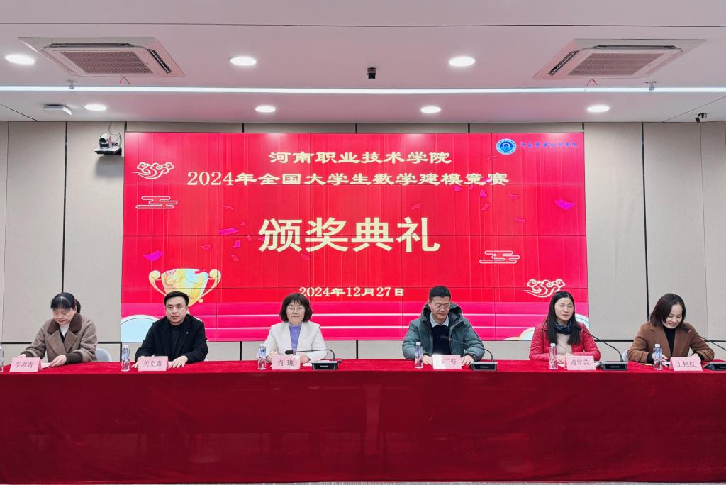 12月27日下午,学校举行2024年全国大学生数学建模竞赛颁奖典礼,为获得国赛二等奖的5支团队、省赛一等奖的4支团队和省赛二等奖的4支团队颁发获奖证书。校党委委员、副校长肖珑出席活动并讲话。郑州大学数学与统计学院博士生导师冯三营受邀参加活动并作主旨发言。综合实训中心、基础教学部相关负责人,数理教研室全体教师,数学建模竞赛参赛团队及数学建模协会代表参加活动。