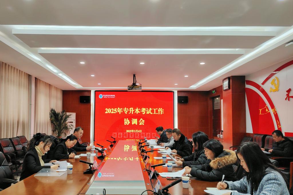 3月4日上午,学校在行政楼332会议室召开2025年专升本考试工作协调会。校党委副书记、工会主席田华出席会议并讲话。党政办公室、纪委办公室、党委学生工作部、党委保卫工作部、财务处、教务处、后勤管理处和信息中心等相关部门负责人参加会议。