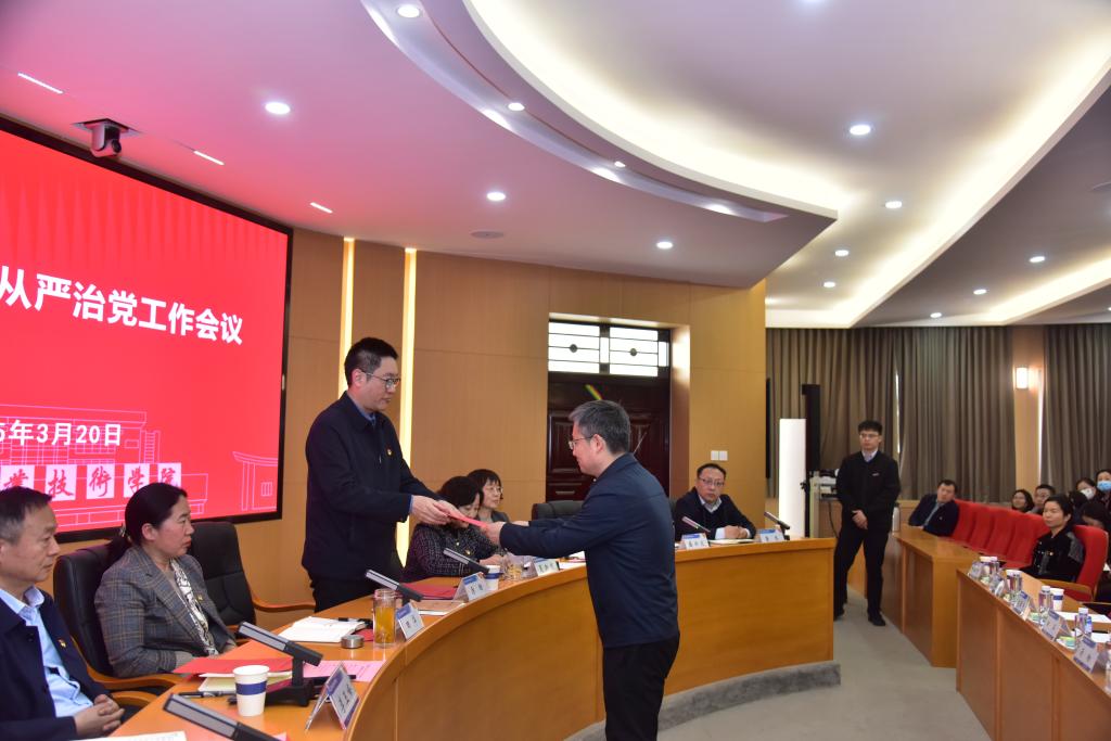3月20日下午,河南职院召开2025年全面从严治党工作会议。会议深入学习贯彻习近平总书记在二十届中央纪委四次全会上的重要讲话和全会精神以及省纪委五次全会精神,回顾总结过去一年学校全面从严治党工作,分析研判形势,部署安排今年重点工作。全体校领导、中层副职及以上干部参会。会议由校党委副书记、校长夏新颜主持。