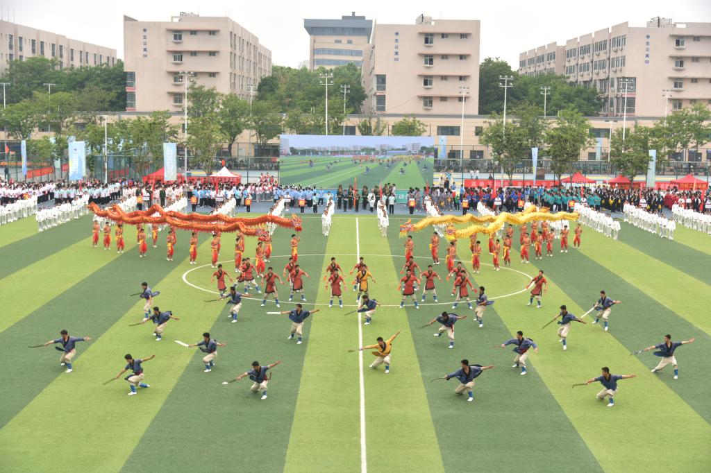 在开幕式展演环节,学校控制工程学院、数字创意与设计学院、武装部办公室参军意愿学生展演队、河南金龙舞狮团、登封市嵩山少林塔沟武术学校带来《龙狮共“武”》;教职工队伍表演了健身气功《八段锦》;音乐学院、校篮球队、足球队、健美操队表演了《哪吒闹海》和《我爱你中国》。师生节目活力四射、激情澎湃,赢得现场阵阵掌声。