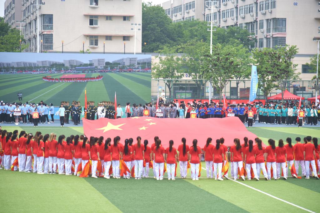 入场完毕后,举行庄严的升旗仪式。在雄壮的国歌声中,五星红旗冉冉升起,全体师生庄严肃立,齐唱国歌,心中涌起强烈的民族自豪感与爱国情怀。