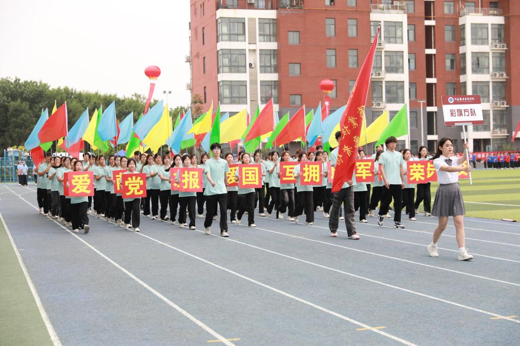 伴随着激昂的《运动员进行曲》,国旗护卫队与仪仗队步伐铿锵入场,紧随其后的彩旗方队、裁判员方队、12个二级学院方队和教职工方队依次步入会场。各方队精神抖擞、意气风发,当青春激情与创意表达在主席台前交相辉映,每个定格都绽放出"活力河职"最璀璨的青春光芒。