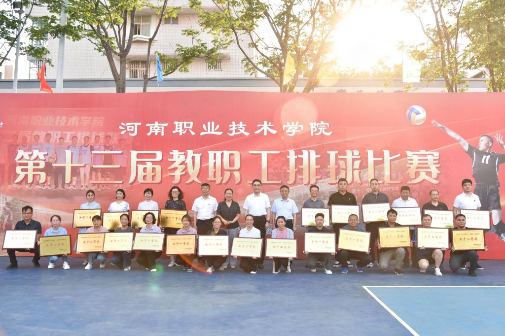 6月13日下午,河南职院第十三届教职工排球比赛圆满落下帷幕。校党委书记厉励出席闭幕式并为获奖代表队颁奖。校党委副书记、工会主席田华致闭幕词。校党委委员、副校长李玉峰主持闭幕式。学校20个分工会的360余名队员参加闭幕式。