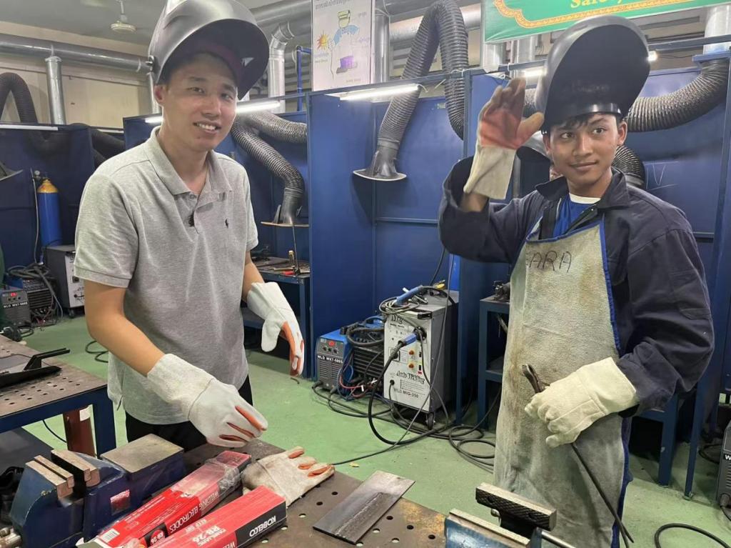 近日,学校材料工程学院智能焊接技术专业骨干教师王亚强赴柬埔寨执教,开展“中文+职业技能”智能焊接技术培训课程。