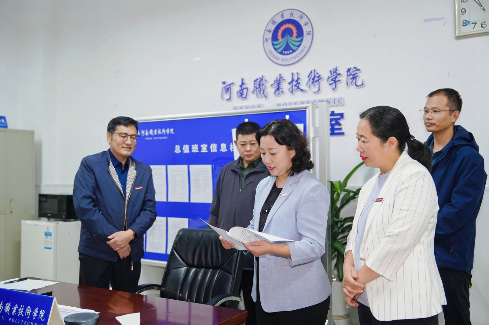 在总值班室,夏新颜仔细翻阅值班台账,逐项询问值班人员在岗履职规范、信息上报流程及突发状况应急处置预案,对值班团队24小时坚守岗位、高效响应校内事务的敬业精神给予高度肯定。她强调“要进一步细化值班流程,明确责任分工,确保校园运行信息传递零延迟、应急处置不拖沓,守住校园安全第一道内部防线”。