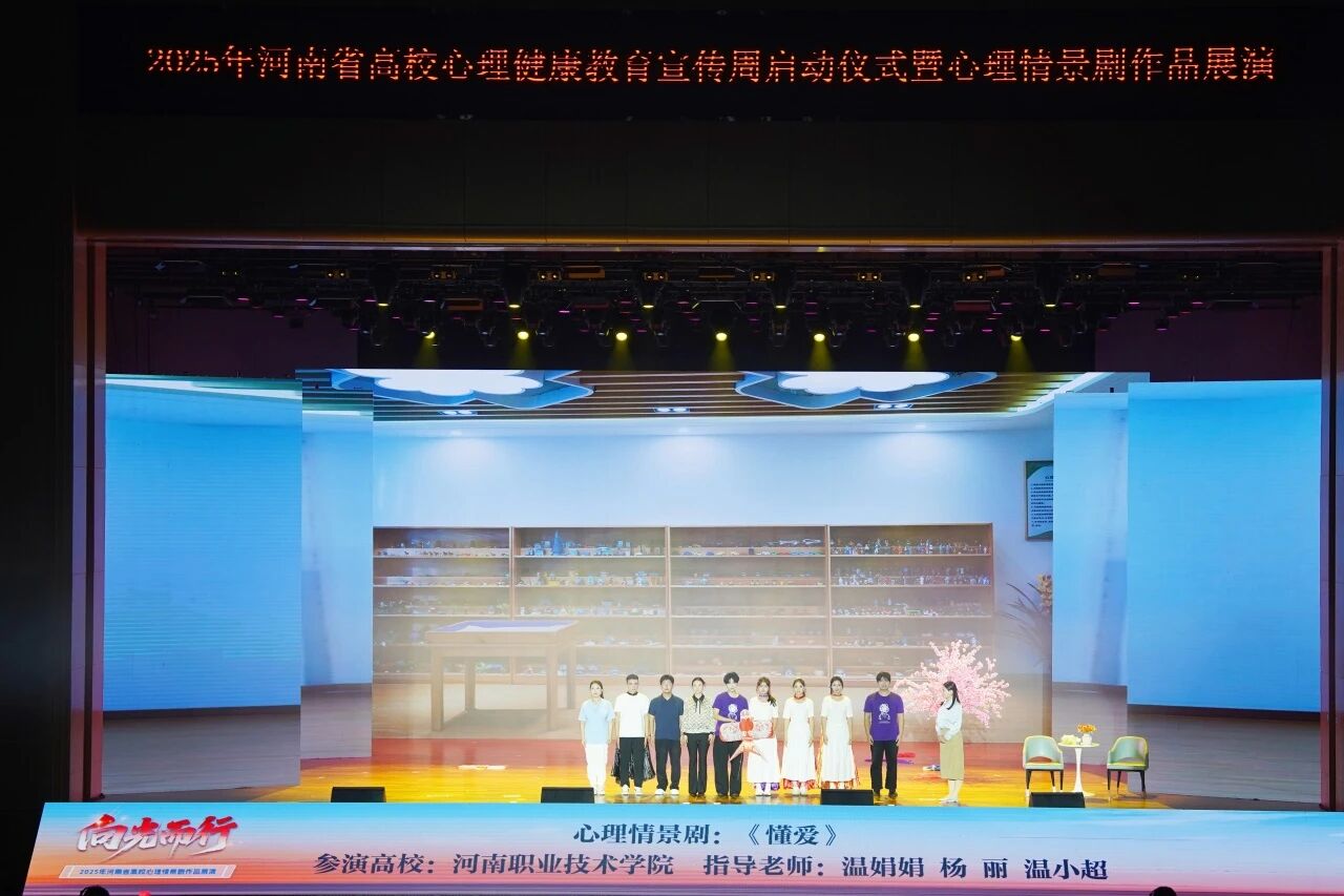 10月20日晚,2025年全省高校心理健康教育宣传周启动仪式暨心理情景剧作品展演活动在河南中医药大学举行,省委教育工委专职副书记、省教育厅党组成员刘林亚等有关领导出席活动。全省高校心理健康教育中心教师、郑州市龙子湖片区部分高校师生代表参加活动。学校心理情景剧作品《懂爱》荣获2025年河南省高校心理情景剧作品征集展演活动精品剧目,并受邀参加现场展演。