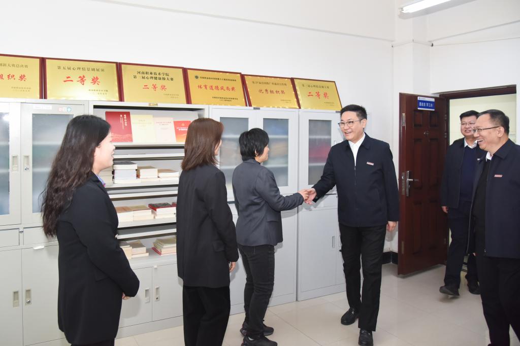 厉励实地察看学院各教研室、办公室及实训室,详细了解实训设施配置、日常教学安排等具体情况,并向在场教师宣讲党的二十届四中全会精神。他指出,“党的二十届四中全会是在我国即将圆满完成‘十四五’规划主要目标任务、乘势而上向基本实现社会主义现代化迈进的关键节点召开的重要会议,具有全局性、战略性深远意义。全会审议通过的‘十五五’规划建议,为我国未来五年发展科学擘画了宏伟蓝图。”他强调,对职业院校而言,全会精神既是办学治校的“指南针”,更是深耕职教赛道的“动力源”。文化旅游学院要精准把握三大关键:切实找准服务国家战略的“契合点”;清晰明确文旅职教的“增长极”;深刻把握助力文旅强省的“机遇期”,全面落实校党委决策部署,持续深化全会精神宣讲阐释,推动全会精神入脑入心、落地生根,切实转化为赋能学院高质量发展的强大动能。厉励勉励教师要扎根职教讲台、深耕育人沃土,把全会精神融入课堂教学与实践育人全过程,以高尚师德和精湛技艺培育文旅行业栋梁;要紧扣文旅产业发展需求,深化产教融合、校企合作,在教学创新与科研攻关中勇挑重担,为文旅强省建设注入职教力量。