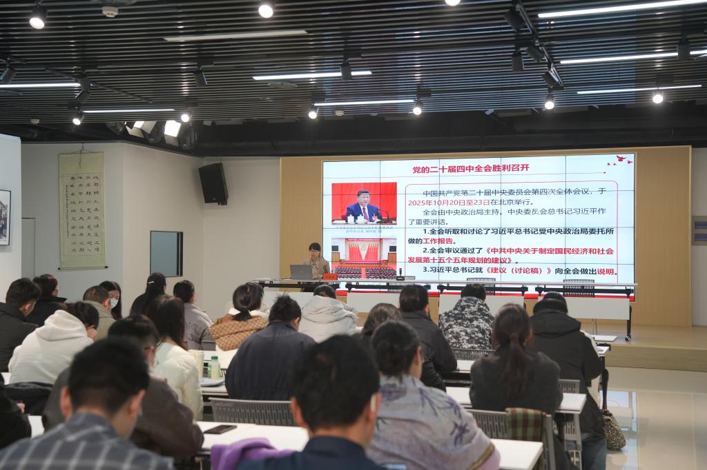 宣讲中,马克思主义学院教师常丽丽以“深悟党的二十届四中全会精神,奋力开创中国式现代化新局面”为题,围绕全会重大意义、“十四五”发展成就、“十五五”宏伟蓝图以及贯彻落实路径四个方面,系统阐释全会核心要义,重点解读全会审议通过的《中共中央关于制定国民经济和社会发展第十五个五年规划的建议》,结合“六大原则”“七方面目标”“十二项重点任务”,将“高水平科技自立自强”“全体人民共同富裕”等国家部署与淇县本地实践相结合,针对文明单位实际工作,聚焦使命任务、突出实践导向,着力推动全会精神由“理论”化为“行动”,引导淇县干部职工在深化认识中找准坐标,在对标落实中彰显担当,进一步激发干事创业、建功时代的奋进力量。