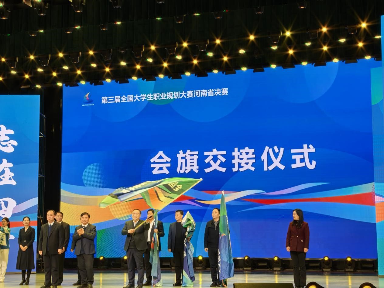 1月28日上午,第三届全国大学生职业规划大赛河南省决赛颁奖仪式在洛阳师范学院举行。学校7名参赛学子凭借过硬实力,获金牌4枚,银牌3枚;学校荣获“优秀组织奖”。校党委委员、副校长鲁冬带领相关师生参加颁奖仪式,并代表学校接过了下一届职教组就业赛道承办会旗。