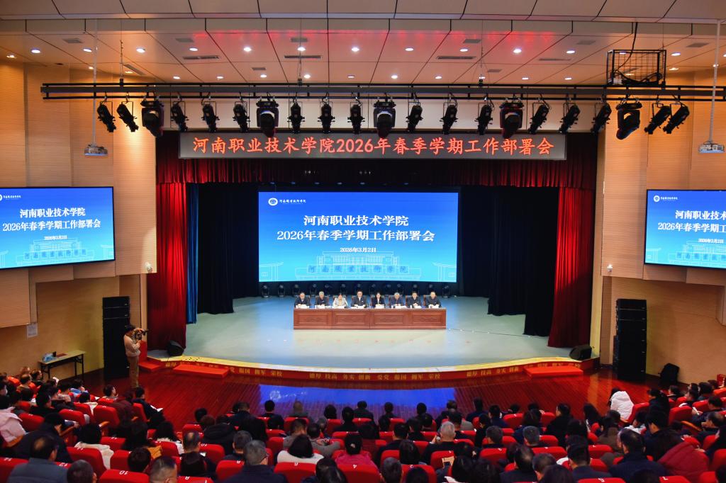 校党委书记厉励作了题为《牢固树立和践行正确政绩观,奋力谱写内涵式高质量发展新篇章》的讲话。他充分肯定了2025年学校取得的各项成绩,就全面落实好学校2026年重点工作,提出四点要求:一是以擎旗铸魂之姿激活“主动能”,在党建领航强根基上展现新作为。要切实抓好学习教育,确保取得实效;抓牢关键任务,建强党建体系;抓实立德树人,深化“四全育人”,全力打造新时代立德树人工程“河职样板”。二是以夯基提质之志把准“主方向”,在改革创新促发展上谱写新篇章。要锚定教育强国战略方位,在职业本科创建中抢抓机遇;始终坚持高质量发展方向,在教学关键要素改革中创优争先;深耕特色发展方略,在分类发展中实现重大突破;聚焦就业民生底线,在就业大考中交出过硬答卷,向学生、家长和社会交出一份满意的答卷。三是以实干争先之势勇当“主力军”,在攻坚克难求突破上开创新局面。全校党员干部要以“干部队伍建设年”为抓手,以开展树立和践行正确政绩观学习教育为契机,严格做到“六个坚持、六个表率”,端正政绩追求,攻坚克难勇争先;强化砺能实干,提质增效善作为;坚持立标激励,选贤任能树新风,凝聚起众志成城破难题、齐心协力促发展的强大合力。四是以守土尽责之为筑牢“主防线”,在安全护航优服务上彰显新气象。要强化底线意识,安全责任再压实;坚持“健康第一”,育人初心再筑牢;优化管理服务,治理温度再提升,全力建设更高水平的平安校园、健康校园、美丽校园、文明校园、幸福校园。